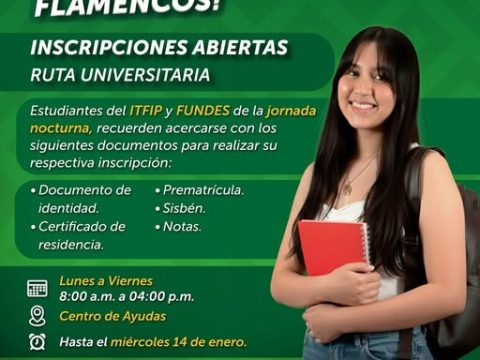 Estudiantes del ITFIP y FUNDES (jornada nocturna) deben acercarse al Centro de Ayudas con los siguientes documentos: Documento de identidad, prematrícula, Sisbén, notas y certificado…