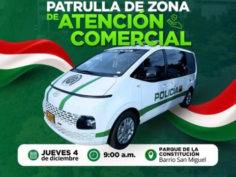 Este jueves 4 de diciembre, en el Parque de la Constitución, la Administración Municipal entregará la nueva Patrulla de Zona de Atención Comercial (CAI Móvil),…