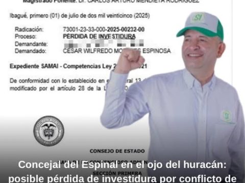 El concejal César Morales, del movimiento Somos Independientes (SI), podría perder su investidura luego de que el Tribunal Administrativo del Tolima aceptara una demanda en…