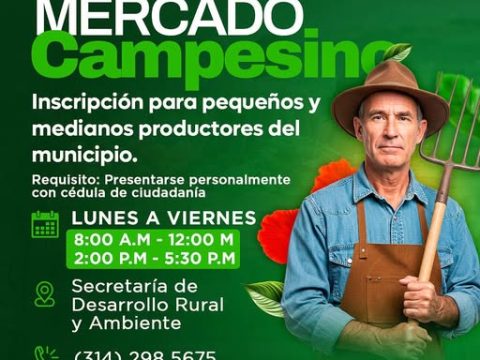 La Administración Municipal invita a los pequeños y medianos productores a participar en el próximo Mercado Campesino, un espacio de promoción y fortalecimiento de la…