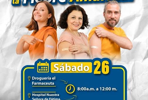 Posted in flandes Author: ghnoticias Published Date: 25 abril, 2025 ¡Protégete y protege a los tuyos! Este sábado tendremos puesto de vacunación en Flandes. Si aún no te has vacunado, ¡es tu oportunidad! Vacúnate y ayúdanos a frenar la fiebre amarilla, porque ¡la amenaza tiene color! #UnidosTransformamosFlandes Author: ghnoticias