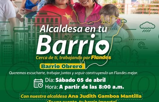 En un empeño para estar más cerca de las comunidades y brindarles comodidades en acercamientos,Ana Judith Gamboa Mantilla alcaldesa de Flandes ha inplementado el programa Alcaldesa a Tu Barrio.