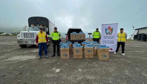 “En actividades de registro y control, junto con personal operativo del Grupo Anticontrabąndo de la Gobernación del Tolima, logramos la incąutación de 14 cajas que en su interior llevaban aproximadamente 7.000 cajetillas de cigarrillos. Logramos asestar un valioso golpe a este personal que pretendía introducir estos productos en la ciudad de Cali. Esta mercancía venía proveniente de la costa atlántica y fue dejada a disposición del grupo operativo de la Gobernación”.