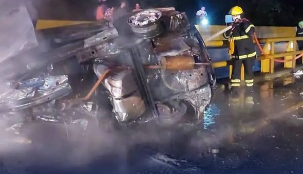 A pesar de la presencia oportuna de bomberos voluntarios de El Guamo,los dos ocupantes perdieron la vida en la conflagracion. Autoridades están investigaciones las posible causas del hecho.