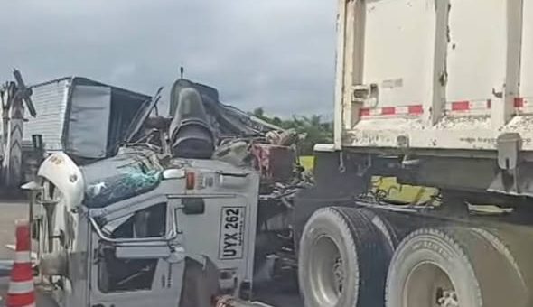 Según el reporte preliminar, un tractocamión colisionó por la parte trasera con una camioneta turbo que transportaba productos lácteos. A pesar del fuerte impacto, no se presentaron personas lesįonadąs.
