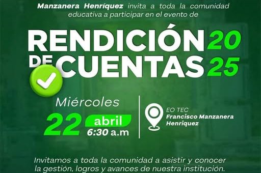 La Secretaría de Educación invita a toda la comunidad educativa y padres de familia a ser parte de la Rendición de Cuentas del periodo 2025, un espacio de diálogo y transparencia donde compartiremos los logros, avances y gestión de la institución.