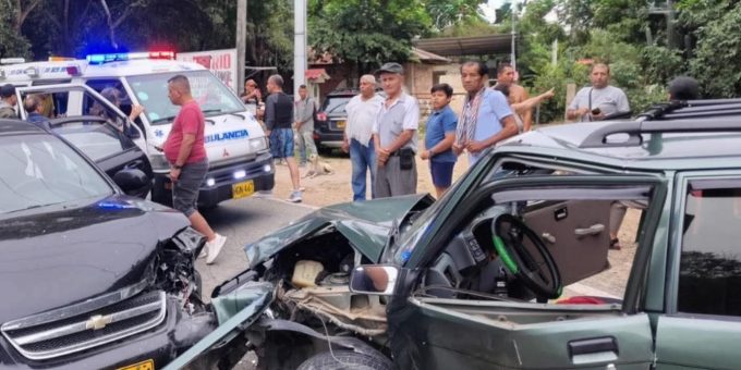 El choque frontal entre un Chevrolet Optra (BYS 526) y un Chevrolet Sprint (BLS 163) ocurrió en una curva de la vía que comunica Ricaurte con Agua De Dios.